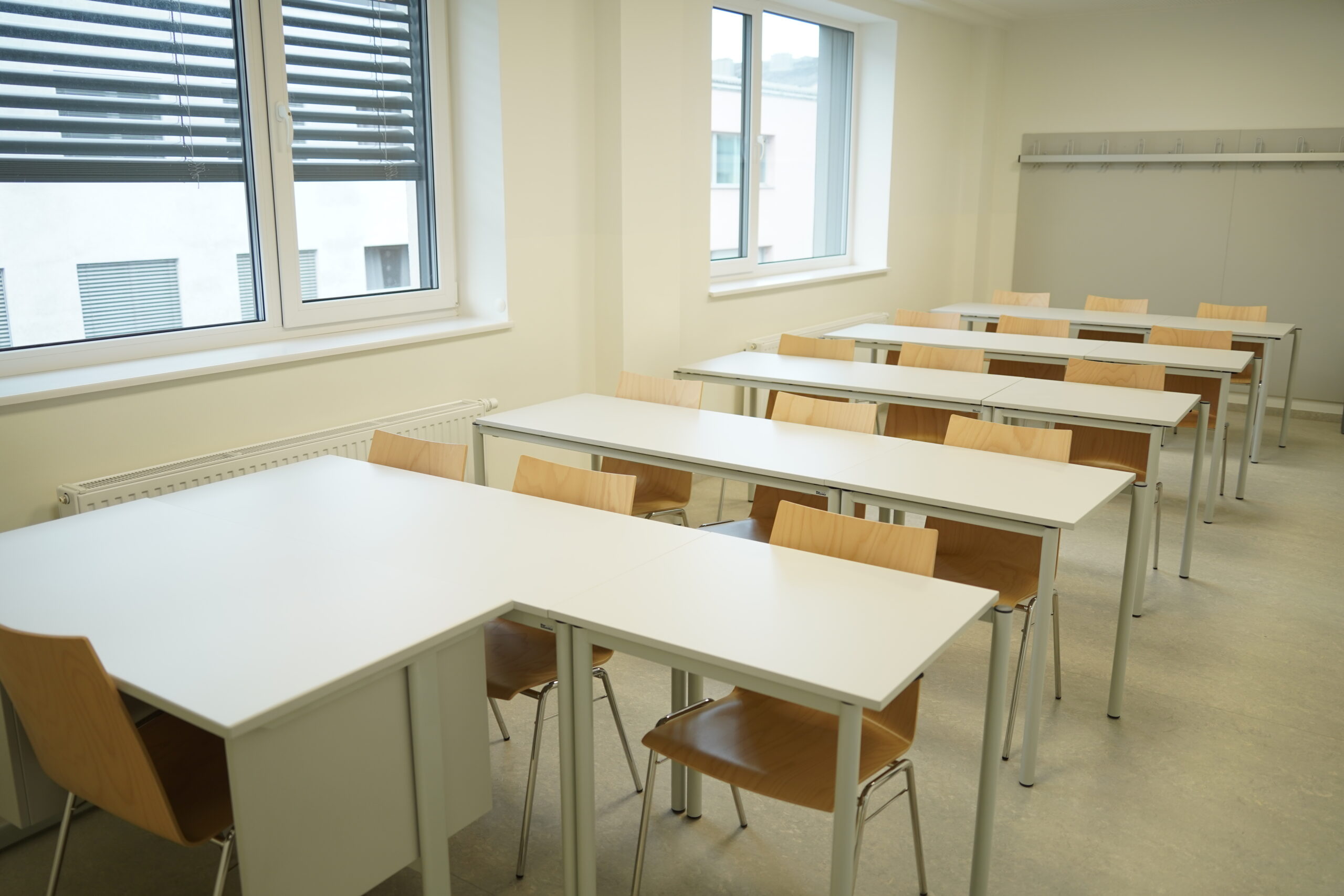 Ein interaktives Whiteboard ist vorhanden. Auf derselben Etage befindet sich eine gemeinschaftlich nutzbare Teeküche.